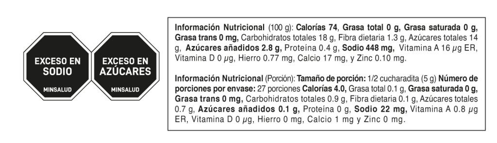 - 27 porciones. Contenido Neto 133 g. (5.4 Oz.).